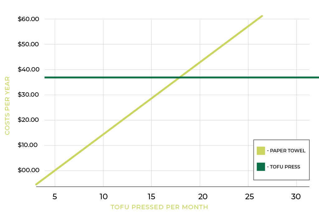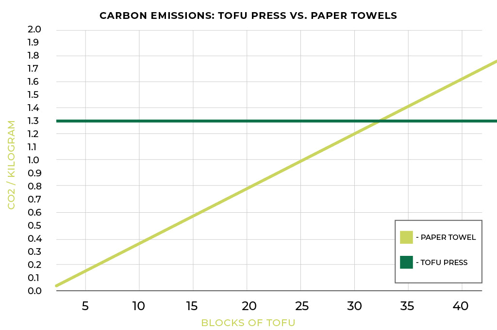 We decided to crunch the numbers around pressing tofu and found that: reusable tofu presses decrease users’ carbon footprint and are cheaper than most other pressing alternatives in the long run.