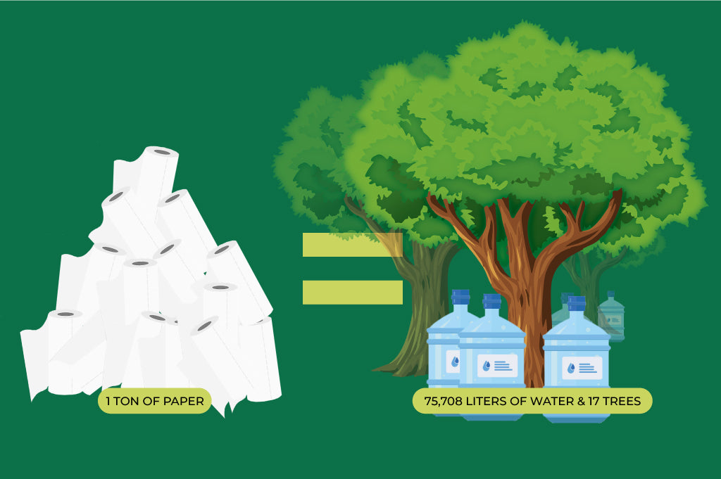 One ton of paper towels currently requires 20,000 gallons of water and 17 trees , not to mention the resources needed for production and distribution.