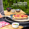 HomeBuddy pizza paddles are 12" x 14" (folded) but extend to 12" x 25" when the handle is unfolded. It's the perfect length to protect you from the heat as you slide your pizza in or out of the oven! The metal pizza peel is perfectly sized for preparing traditional medium (12") or small pizzas. The handle is stylish and just the right size. You’ll be able to comfortably carry those perfectly-sized pizzas easily without a mess!