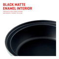 The satin black enamel interior requires minimal seasoning, as it will absorb oils used in cooking, creating a naturally non-stick surface over time. It means you'll use less oil, which is better for your health and makes cleaning and maintenance super easy. There is no need to season it as you do with normal cast iron cookware regularly!