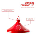 This Tagine was designed with traditional Moroccan cookware in mind. True to tradition, the conical lid recirculates moisture inside the pot. This prevents food from drying out, even with minimal liquid or oil.
